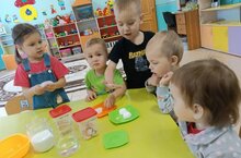 В младшей группе прошла пятиминутка на тему «Часы науки". Дети с удовольствием и большим интересом знакомились со свойствами воды, проводили опыты с ней. Выяснили какие предметы плавают, какие нет и почему, а также узнали , что вода может окрашиваться и превращаться из жидкой в твердую. В конце мы с детьми сделали выводы.