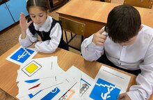 Балаларның юл - транспорт травматизмын кисәтү максаты белән 7 класс укучылары 3 һәм 4 класс укучыларында профилактик әңгәмә үткәрделәр...