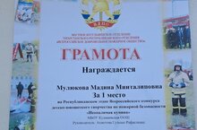 Поздравляем с победой ученицу 5 класса Мулюкову Мадину в Республиканском этапе Всероссийского конкурса "Неопалимая купина".