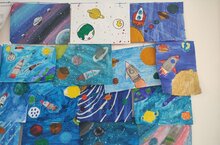 В Год Учителя и наставника В канун дня космонавтики прошла тематическая выставка детских рисунков "Безмолвие галактики".