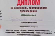 Ученица 1 класса МБОУ Кудашевской ООШ Гарайханова Амалия прошла во второй тур конкурса чтецов “Остался в сердце вечный след войны”, организованный МБУК “Межпоселенческая центральная библиотека” Бугульминского МР РТ. За отличное выступление во второй возрастной группе Амалия была награждена Дипломом ” За сложность поэтического произведения” в конкурсе чтецов”Остался в сердце вечный след войны”, посвященного 80-й годовщине Победы советского народа в Великой Отечественной войне.
