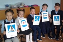 Учащиеся начальной школы участвовали в играх и викторинах на знание правил дорожного движения, сигналов светофора, правил поведения в общественном транспорте и на дороге.