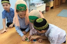 Учащиеся 1 класса приняли участие в литературно-лингвистической игре, посвященном татарскому устному народному творчеству. Разделившись на две команды, они составили из вырезанных букв татарские слова, собрали пословицы. Девочки пели колыбельные песни. Конкурс понравился всем./ Беренче сыйныф укучылары татар халкының авыз иҗатына багышланган әдәби-лингвистик уенда катнаштылар. Ике командага бүленеп, кисмә хәрефләрдән татар телендә сүзләр төзеделәр, мәкальләр җыйдылар. Кызлар бишек җырлары җырладылар. Бәйге һәркемгә дә ошады.