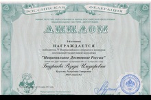 Дипломом I - й степени награждается Бадриева Резеда Ильдаровна, ученица 10В класса МОУ Лицей №2, за победу в конкурсе "Национальное Достояние России" ...