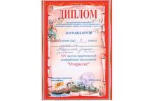 Поздравляем Абдуллаева Эльдара, ученика 9 класса, занявшего III место в XIV научно-практической конференции школьников "Открытие".