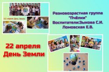 22 апреля мы отмечаем не просто большой, а поистине глобальный праздник - Всемирный День Земли. Сегодня в разновозрастной группе "Пчёлки" прошло познавательное мероприятие "Природа - наш общий дом" , где в доступной форме воспитатели рассказали о значении природы в жизни каждого человека. В завершении в творческой мастерской дети оформили коллективную стенгазету "Земля у нас одна, другой не будет никогда!", а так же слепили макет планеты Земля - глобус.