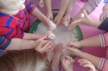 Сегодня в младшей группе «Солнечные зайчики» воспитатели с детьми вспомнили зимние забавы, рассмотрели сюжетные картины и провели опыты со снегом. Дети получили массу впечатлений, ещё раз вспомнили свойства снега, правила поведения на прогулке, закрепили знания о времени года «Зима».