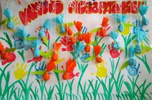 Маму поздравляют малыши!!! С таким красивым названием нарисовали плакат в группе раннего возраста «Озорные бабочки». Из разноцветных ладошек сделали яркую цветочную полянку. А к каждому цветочку, был прикреплен сюрприз – конфета с пожеланием для мамы. Детки очень старались, рисовали, чтобы в очередной раз порадовать самого близкого, любимого и родного человека – МАМУ!