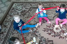 С целью воспитания гражданских и патриотических чувств, любви и уважения к сверстникам воспитанникам группы раннего возраста было предложено поиграть в игру «Вместе – мы сильны!». Держа ленточку в руках, детки замыкали крепкий круг – защиту. А если же кто-то переставал держать ленту, круг ломался, и защита переставала быть прочной.
