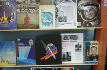Школьная выставка книг, посвящённая 65-летию триумфа отечественной космонавтики.