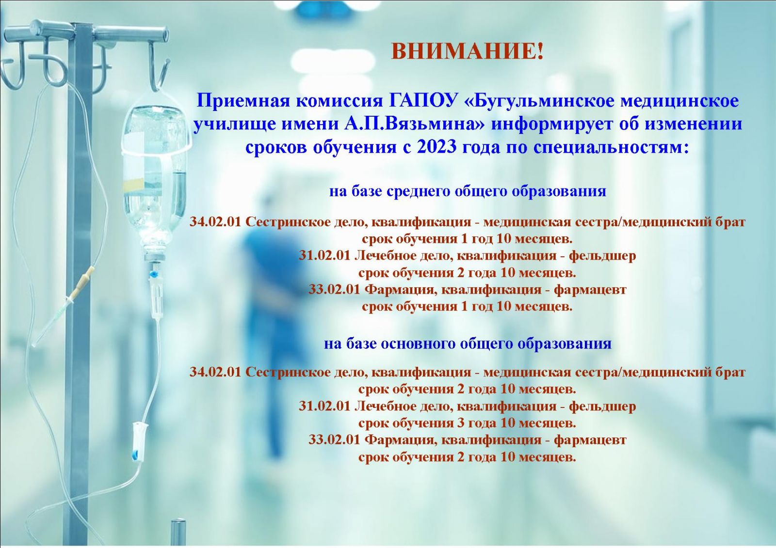 На базе ГАПОУ «Бугульминское медицинское училище имени А.П.Вязьмина» организуется дополнительное обучение для слушателей.