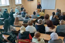 В центральной библиотеке состоялась встреча студентов училища с четой Звегинцевых — многодетными родителями, которые в ноябре этого года отметили 25-летний юбилей совместной жизни. На эту интересную встречу были приглашены студенты СД-23 группы во главе с преподавателем психологии Абрамовой Ю.Н.