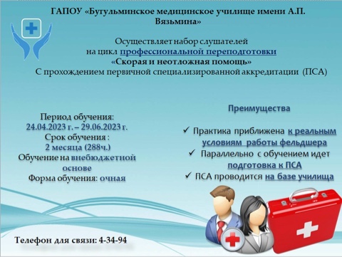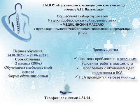 Государственное автономное профессиональное образовательное учреждение "Бугульминский медицинский колледж имени А.П. Вязьмина"