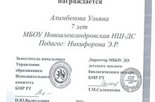 диплом Алимбекова Ульяна"Всемирный день Земли" 21.05.2021