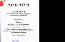 Победа во Всероссийской олимпиаде по истории 16.04.2014
