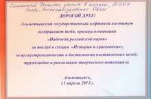 Призер НПК "Школьники XXI века - науке" 11.04.2013