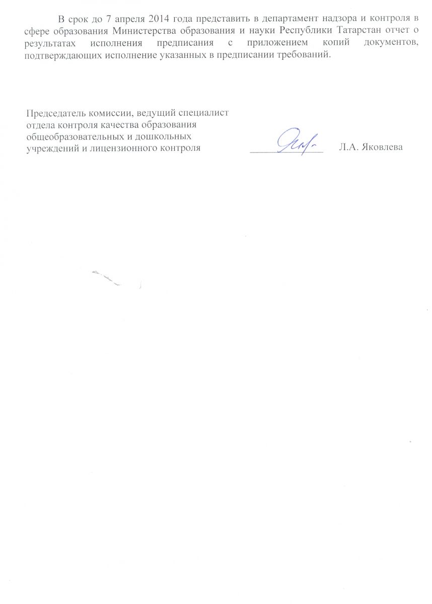 Предписание департамента надзора и контроля в сфере образования МО и надзора РТ от 27 декабря 2013 года № 4482/13