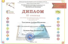 В секции "Психология и педагогика", по теме "Моделирование профессионального самосознания будущих педагогов в процессе практической подготовки" Тазетдинова Альбина получила диплом 1 степени. Поздравляем! -