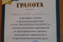 18 марта в молодежном клубе "Миллениум" прошла Интеллектуальная игра "Время играть. Безопасная дорога", в рамках реализации мероприятий по предупреждению дорожного-транспортного травматизма в подростково-молодежной среде. Студенты БППК группа АМ-19-1, в составе: Яковлев Данил, Логинов александр, Гатауллин Марат, Давлетов Марат (руководитель Рафагутдинов Р. С.) приняли активное участие и были награждены грамотой!