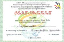 Сетевой чемпионат рабочих профессий World Skills Russia 15.02.2016