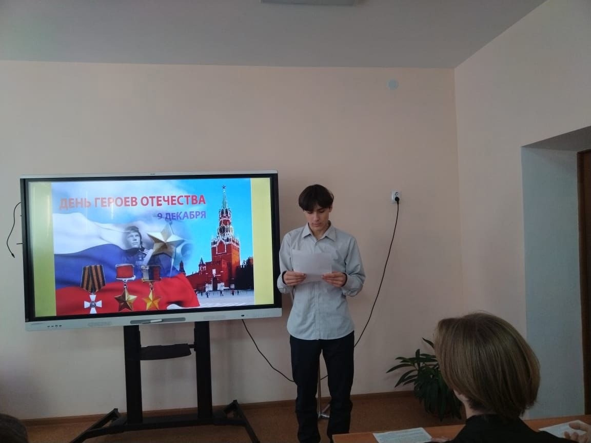 Преподаватель истории Лыкова Г.В. рассказала студентам, что День героев Отечества-памятная дата приурочена к учреждению ордена Святого Георгия Победоносца в 1769 году. Эту почетную награду получали воины, проявившие в боях особую смелость, мужество и отвагу. А в советские времена высшей степенью отличия было звание Героя СССР, установленное в апреле 1934 года.