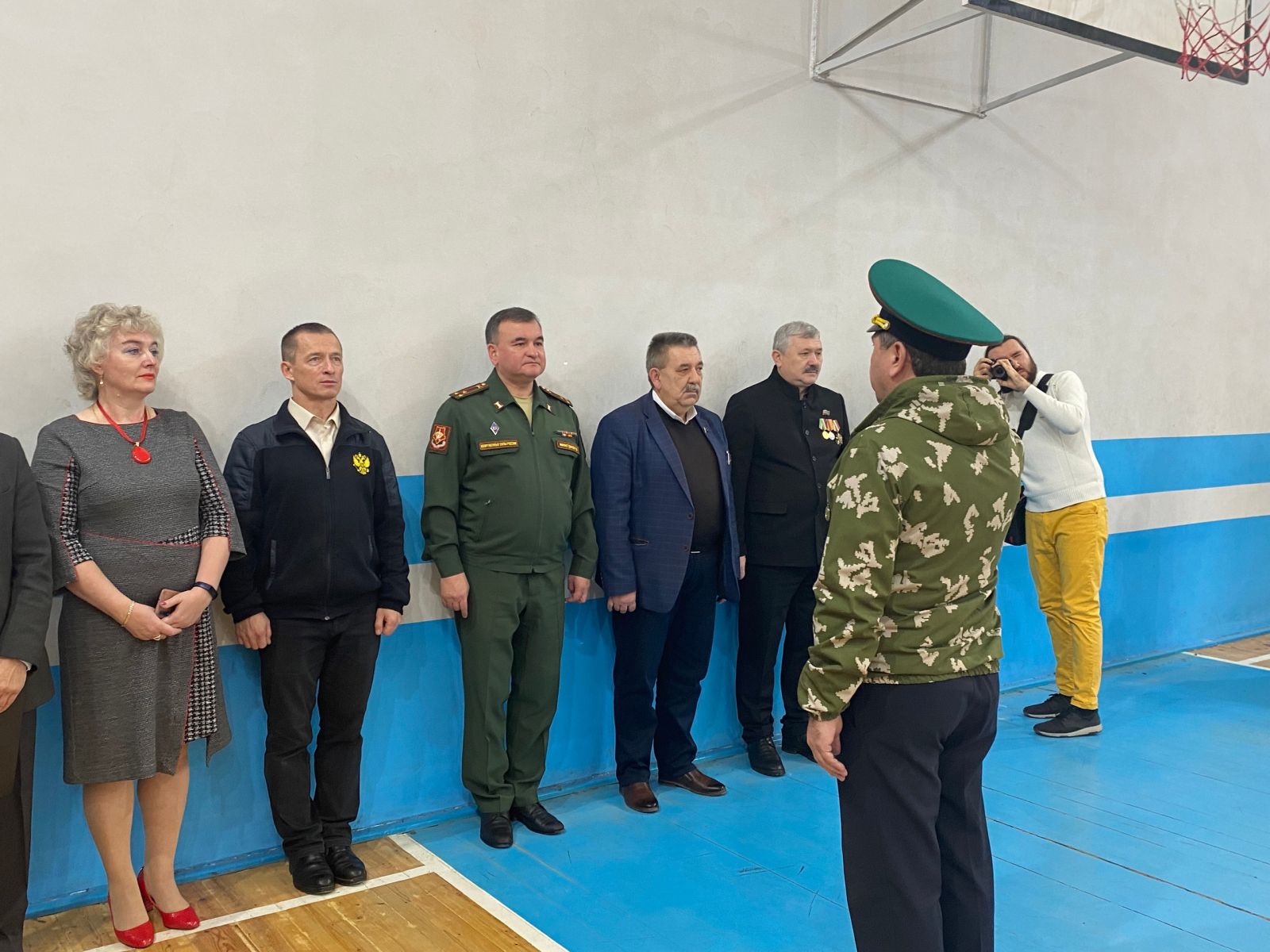 Ветеран пограничных войск, глава поселка городского типа Карабаш Заляев Ильдар Ильгизович докладывал военному комиссару г.Бугульмы, полковнику Миннетдинову Р.Ш. о начале соревнований.