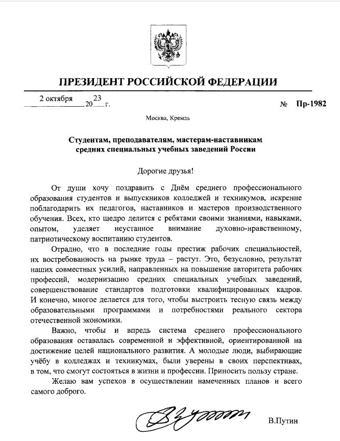 Телеграмма от Президента Российской Федерации / Россия Федерациясе Президентыннан Телеграмма