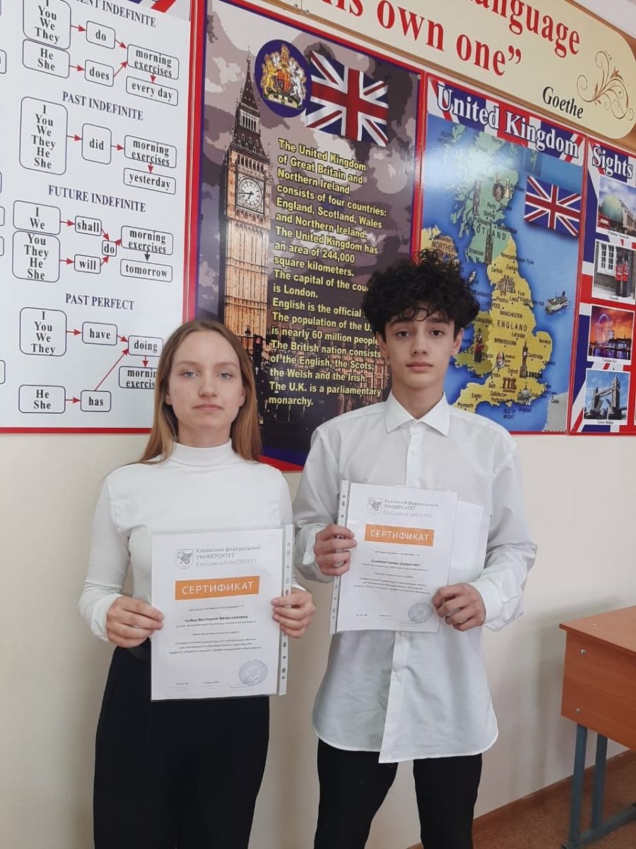 На базе Елабужского института КФУ состоялась Весенняя сессия университетских олимпиад. Студенты первого курса, Чайка Виктория и Салимов Самин, приняли участие в олимпиаде по английскому языку. Ребята успешно выступили как на заочном так и на очном этапе. Студенты показали хороший уровень знаний английского языка по видам речевой деятельности: аудированию и говорению. Им вручены сертификаты. Поздравляем наших студентов и желаем дальнейших успехов в обучении!