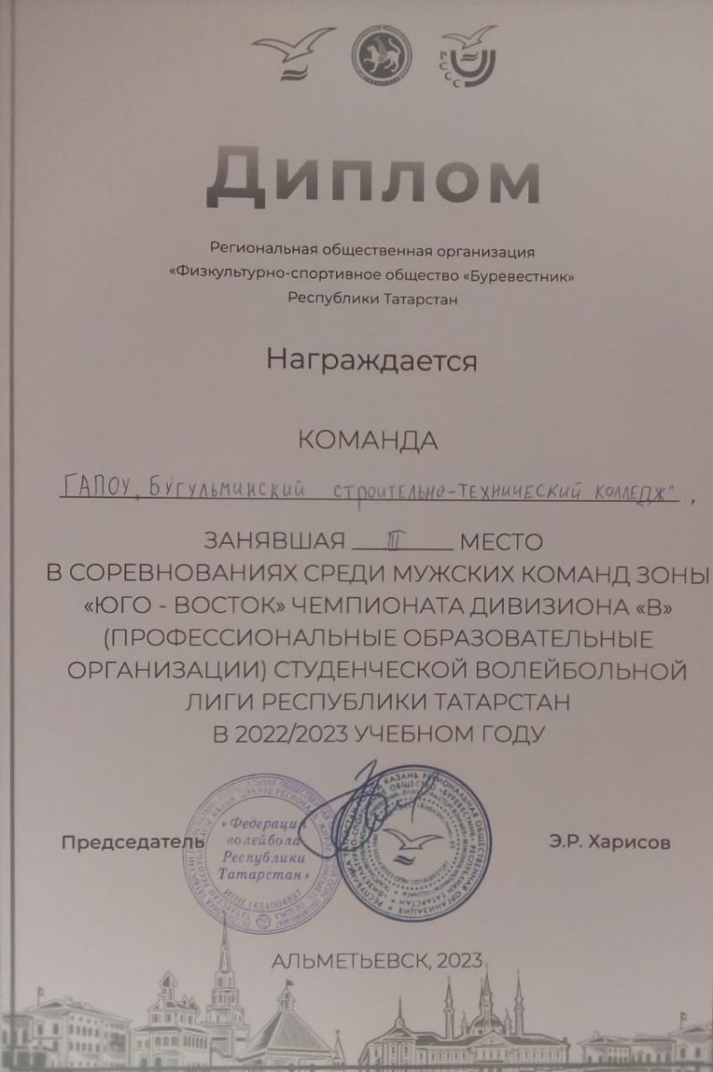 07.02.2023г в г.Альметьевск проходили соревнования по волейболу среди мужских команд зоны «Юго-Восток» Чемпионата дивизиона «В» (профессиональные образовательные организации) студенческой волейбольной лиги Республики Татарстан.