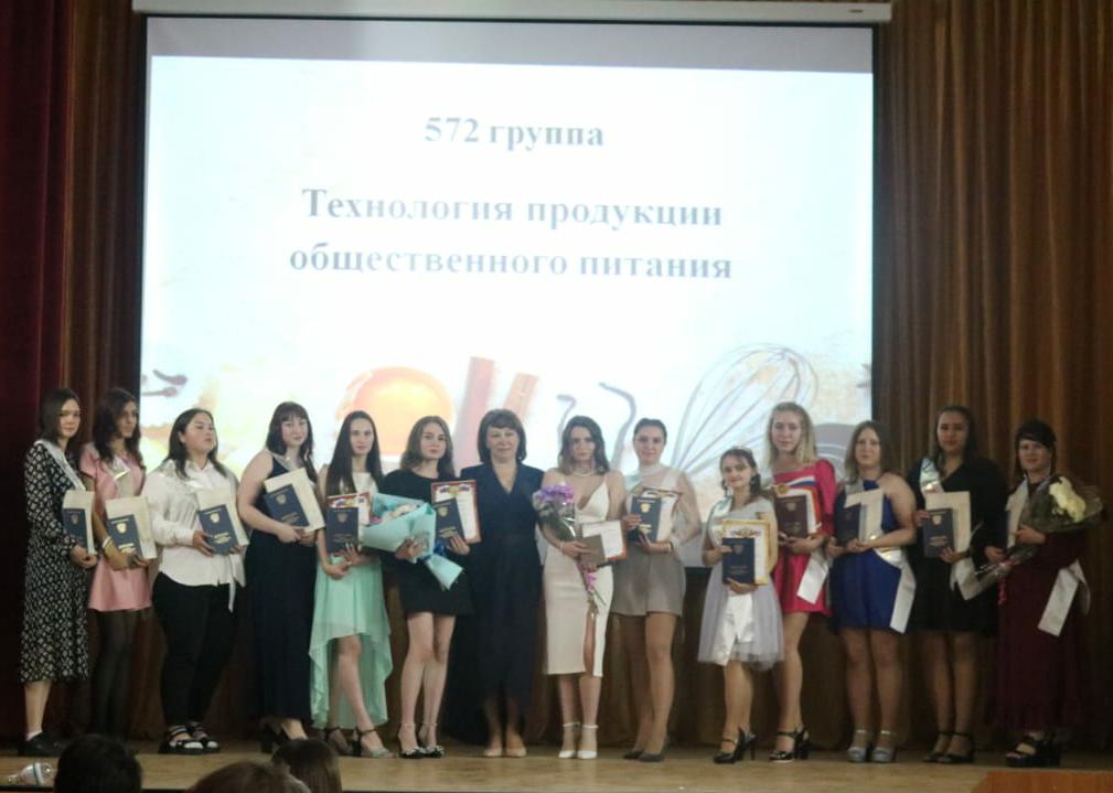В торжественной обстановке Маслов А.С. вручил дипломы выпускникам 572 группы: 16 студентов получили среднее профессиональное образование по специальности «Технология продукции общественного питания», из них двое – Ахмадеев Айдар и Шарафутинова Ильнара - дипломы с отличием. Лучшие выпускники группы были награждены грамотами, а родители – благодарственными письмами.