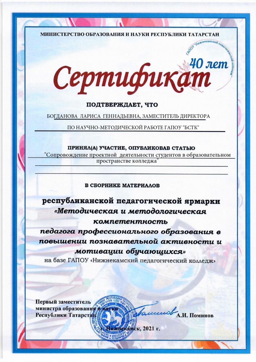 26 ноября 2021 года в г. Нижнекамск состоялась Республиканская педагогическая ярмарка «Методическая и методологическая компетентность педагога профессионального образования в повышении познавательной активности и мотивации обучающихся».
