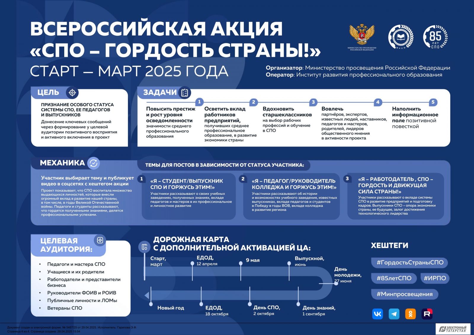 профессиональной деятельности благодаря полученному образованию. Хештег акции: #ГордостьСтраныСПО #85летСПО Темы: