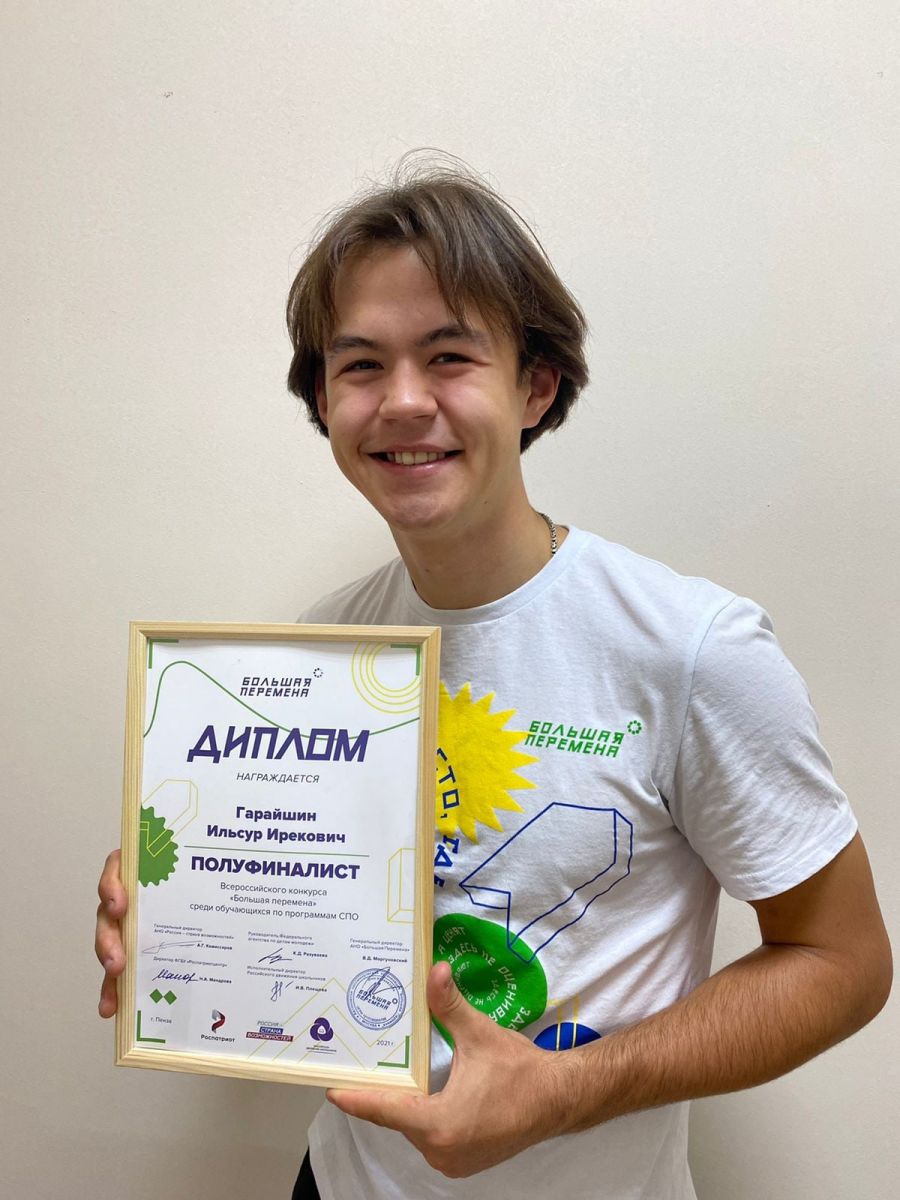 В Пензе с 12 по 16 сентября 2021 года проходил полуфинал Всероссийского конкурса «Большая перемена» для студентов образовательных учреждений СПО. Студент четвёртого курса Бугульминского строительно-технического колледжа, обучающийся по специальности «Строительство и эксплуатация зданий и сооружений» стал участником этого полуфинала.