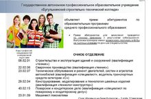 Бугульминский строительно-технический колледж приглашает абитуриентов