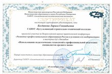 Всероссийская научно-практическая конференция «Развитие профессионального образования России в условиях его модернизации» 30.10.2019