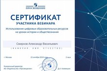 Вебинар "Использование цифровых образовательных ресурсов на уроках истории и обществознания" 23.10.2019