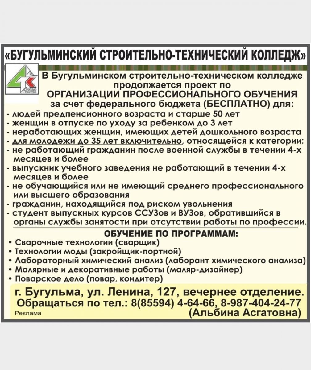 Государственное автономное профессиональное образовательное учреждение "Бугульминский строительно-технический колледж" / Дәүләт автоном һөнәри белем бирү учреждениясе “Бөгелмә төзелеш-техник көллияте”
