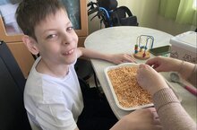 Как игры с крупами помогают бугульминским детям с ДЦП развивать моторику. Ярмалар белән уеннар Бөгелмә балаларына моторика үстерергә ничек ярдәм итә. 13.04.2026