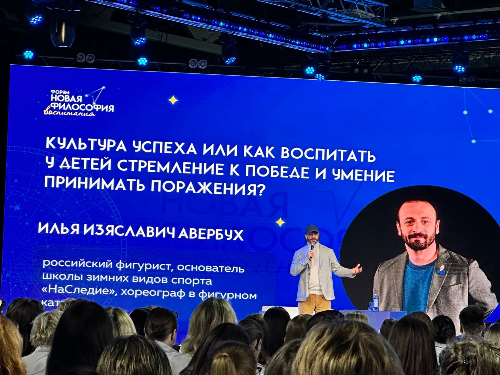 Совсем недавно советник директора по воспитанию Низамутдинова Наталья Викторовна вернулась из Москвы, посетив форум «Новая философия воспитания». В Москве, на площадке павильона №57 ВДНХ «Моя Россия-моя история» состоялось открытие Всероссийского форума «Новая философия воспитания». Он объединил более 1500 участников, охватил 89 регионов РФ. Впервые в нем принял участие и город Байконур. За период заявочной кампании представлено более 9000 работ педагогов со всей России. Участники обменивались практиками, получили обратную связь от экспертов в сфере образования, обзавелись новыми знакомствами и усовершенствовали свои навыки. Функционировала телестудия, куда были приглашены: телеведущие, общественные деятели и известные лекторы. Оба дня «Новой философии воспитания» были яркими и насыщенными, а главное невероятно звёздными: форум открыли ведущие Первого канала: Тимур Соловьев и Светлана Зейналова. Приветственное слово было передано Кудряшову Александру Сергеевичу, директору ФГБУ «Росдетцентр». Спикерами выступил: Витольд Альбертович Ясвин, заведующий кафедрой педагогической культуры и управления в образовании МГИМО МИД России, с темой: «Воспитание как формирование отношений личности»; Родина Ольга Александровна, эксперт «Росмолодёжь» с темой выступления: «Грантовые конкурсы как вектор роста педагога»; Елена Богданова, кандидат педагогических наук, директор «Центр опережающего профессионального развития», г. Новосибирск, с темой «Родительское сообщество: партнеры, попутчики, почтальоны»; Илья Изяславич Авербух, российский фигурист, основатель школы зимних видов спорта «НаСледие», хореограф в фигурном катании, с темой: «Культура успеха или как воспитать у детей стремление к победе и умение принимать поражения?»; Булатов Артемий Анатольевич, руководитель структурного подразделения «Медиацентр Pro46» c темой: «Медиацентр. От идеи к результату». Кравцов Сергей Сергеевич, Министр просвещения Российской Федерации, дал напутствия на дальнейшую работу. Особую роль советников по воспитанию отметил первый заместитель главы администрации президента Сергей Кириенко: «Советники по воспитанию — сегодня это уже больше, чем просто воспитатели, работающие с детьми. Это, в общем, серьезные управленцы, потому что ваша задача — скоординировать, вовлечь всех. Ну потому что это задача всех, воспитание подрастающего поколения — это общая задача. Но главный организатор — это, конечно, советник по воспитанию». Кульминацией форума было выступление группы «Новые самоцветы». Продолжаем формировать новую философию воспитания!