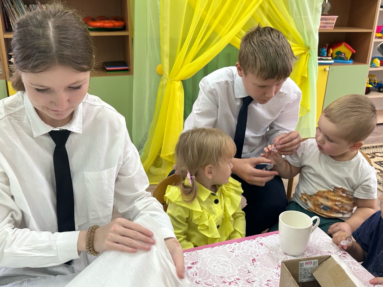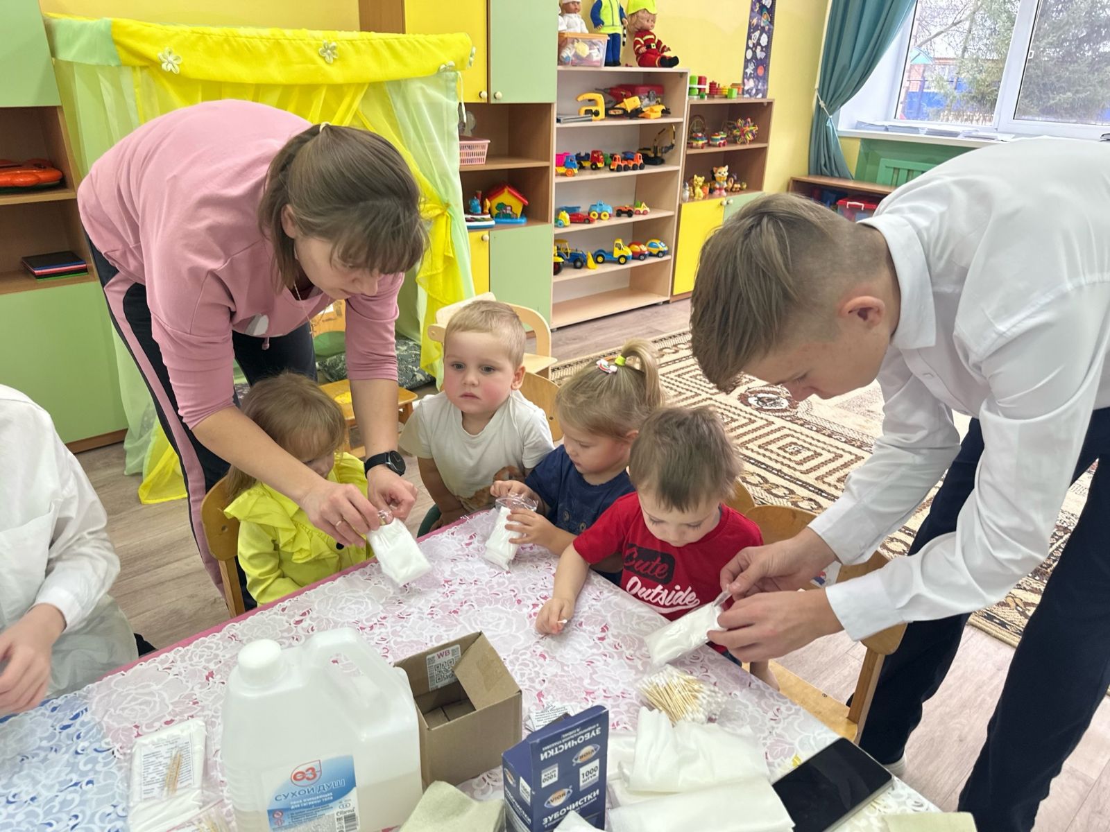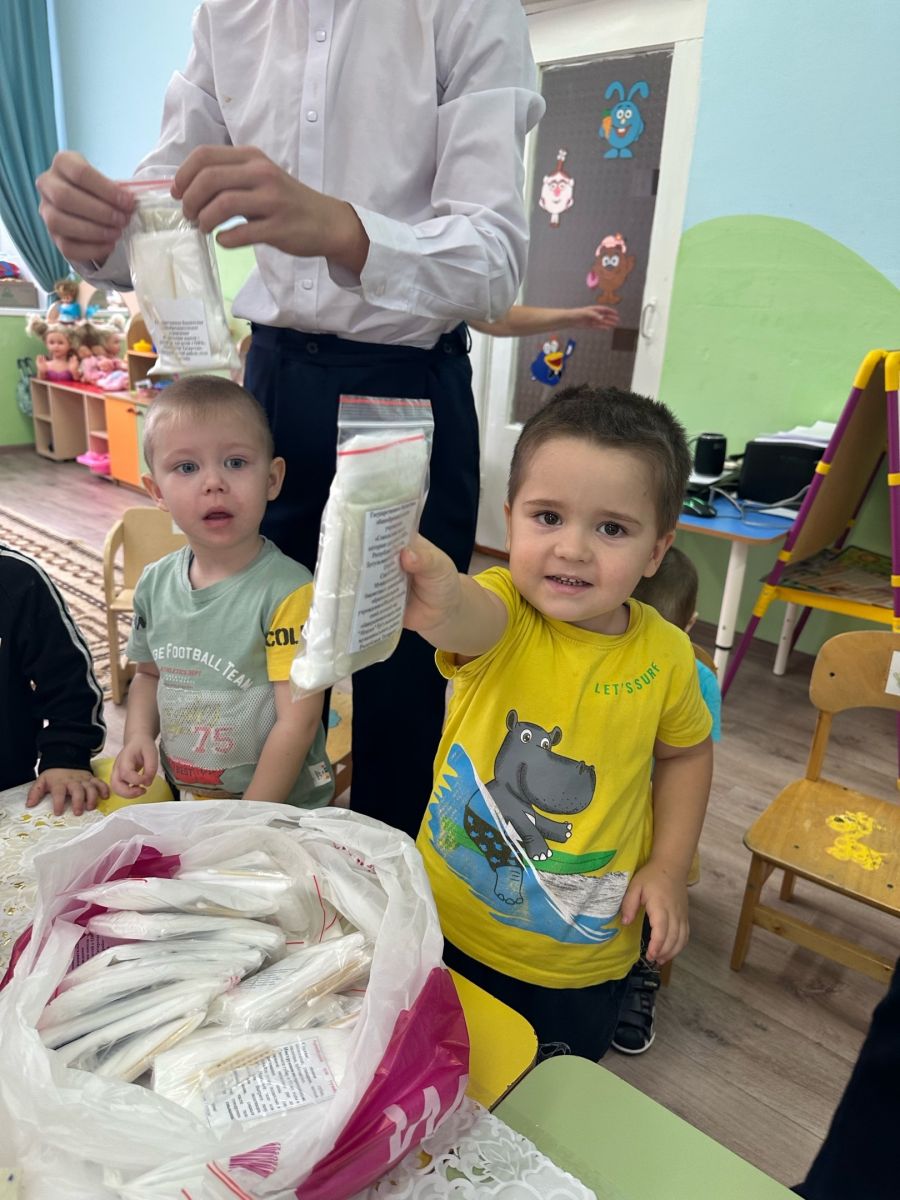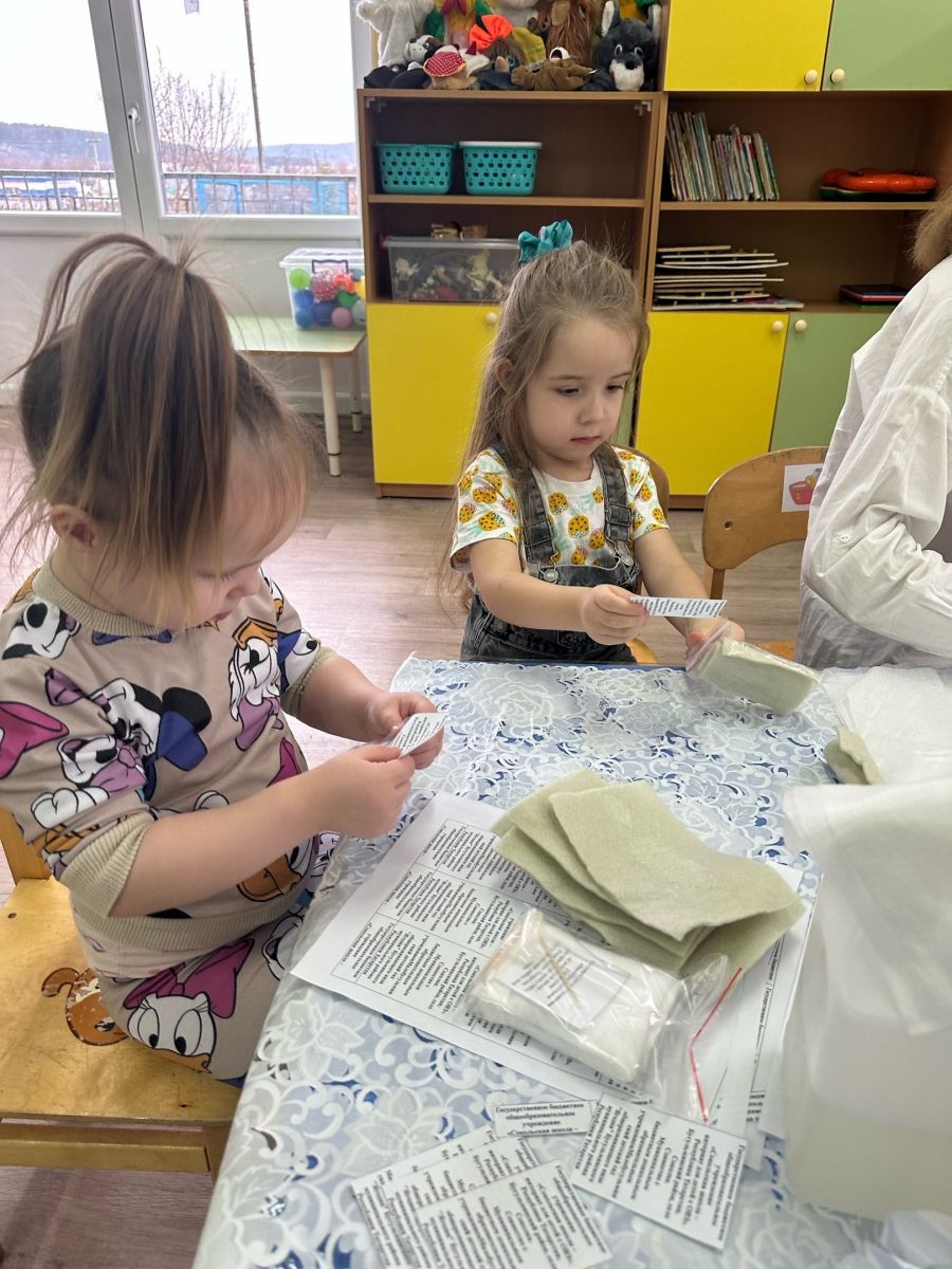 Сегодня советник директора по воспитанию, Низамутдинова Н.В. и обучающиеся ГБОУ «Сокольская школа- интернат для детей с ОВЗ» провели для воспитателя Скарлыгиной М. Н. и воспитанников разновозрастной группы (с 1года до 4 лет) «Озорные бабочки» (МБДОУ Малобугульминский детский сад общеразвивающего вида "Ягодка" Бугульминского муниципального района Республики Татарстан) мастер-класс по изготовлению сухого душа для участников специальной военной операции. Можно ли принять душ, находясь в полевых условиях? Оказывается, да. Если это – сухой душ. Сухой армейский душ – это гигиенический набор, в состав которого входит одноразовое полотенце и губка (из агроволокна дорнит), пропитанная специальным медицинским средством. При небольшом количестве воды (30-50 мл), она даёт обильную пену, которая очищает кожу и не требует смывания водой. Каждый день наши «Добротворцы» помогают взрослым. Волонтёры совмещают учёбу и формирование посылок в зону специальной военной операции. Мы расширяем состав добровольцев, вовлекая и детей раннего возраста, воспитывая в них чувство патриотизма. Бок о бок со старшими наставниками юные добровольцы осваивают новые навыки. Складывая полотенца своими маленькими ручками, они посылают нашим бойцам свое тепло! Собирая совместно с воспитателем, Скарлыгиной М.Н., набор сухого душа малыши даже не подозревают какой вклад в большое дело они вносят, помогая нашим героям, тем самым приближая победу!