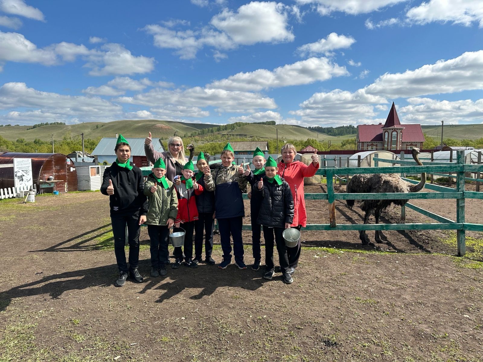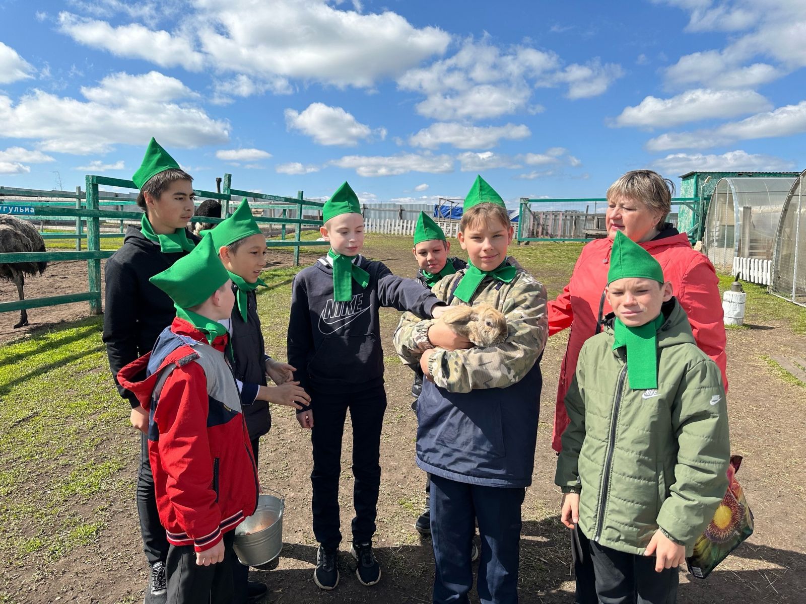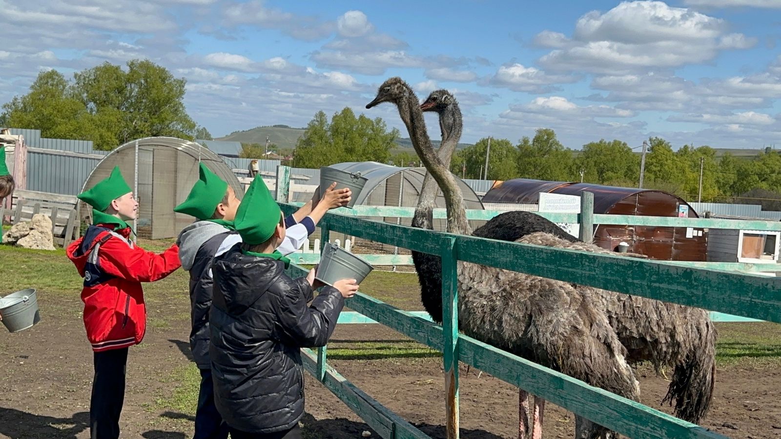19 мая - День детских общественных организаций России, также в этот день отмечается Всемирный день исчезающих видов животных. Эколята нашей школы - интерната совместно с заместителем директора по воспитательной работе, Фирсовой Т.И. и советником директора по воспитанию, Низамутдиновой Н.В., организовали экскурсию на страусиную ферму «Страус и Ко», чтобы познакомиться со страусами, горными козлами, кроликами, курочками, котятами и их мамой- кошкой! Наша детская общественная организация «Эколята» принесли с собой «гостинца» для животных фермы: капусту, морковь, хлеб и колбаску для кошечек. В рамках республиканского конкурса "Эковесна2024" мы приняли участие в акции 7 недели - «ЗооЗабота» (помощь приютам для животных и т.д.). Самым первым животным, который нас встретил - это был козлик Хабиб, добродушный, идущий на контакт, можно сказать, он был настоящим гидом по ферме, так как провожал ребят к животным по определенному маршруту. Наши Экоактивисты накормили всех жителей фермы, на память сделали с ними фото! И даже подержали в руках настоящее страусиное яйцо!