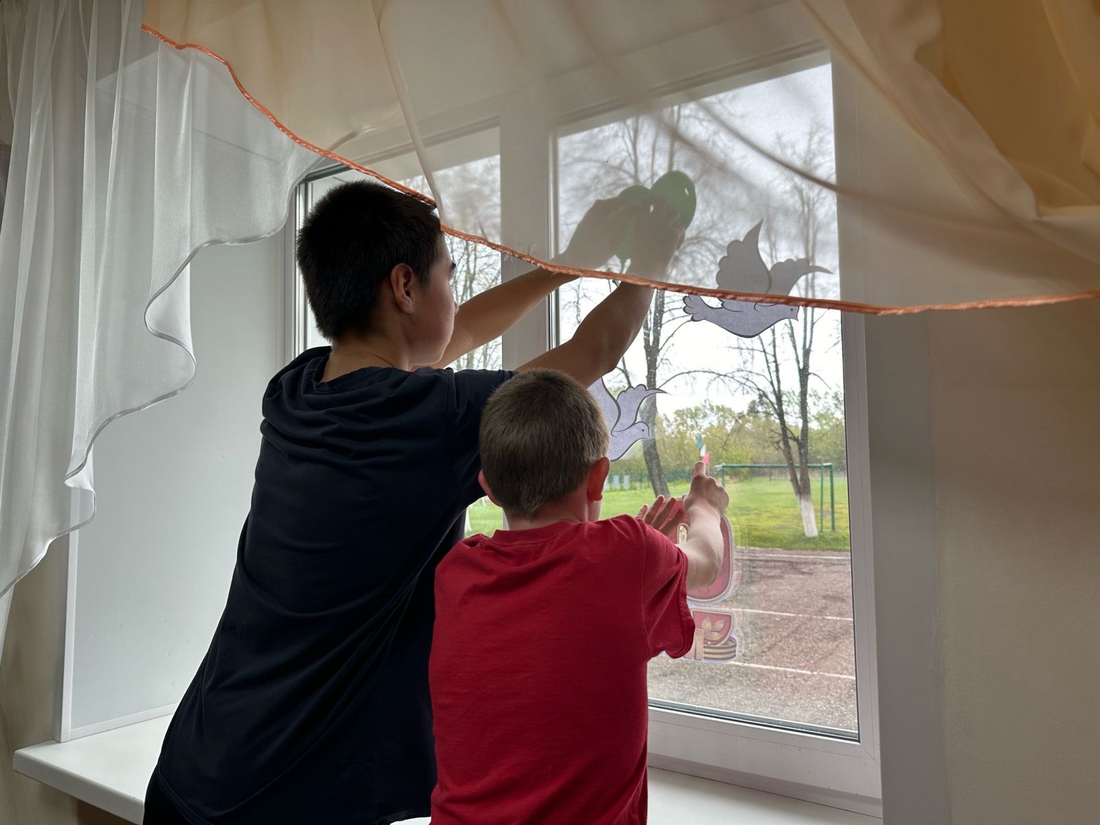 Воспитанники совместно с педагогами оформили окна, присоединившись к акции «Окна Победы», выражая благодарность героям Великой Отечественной войны 1941-1945 г.г.