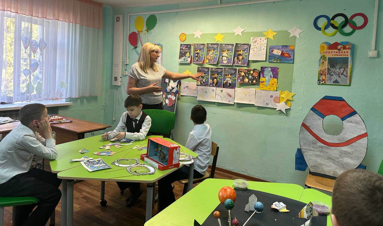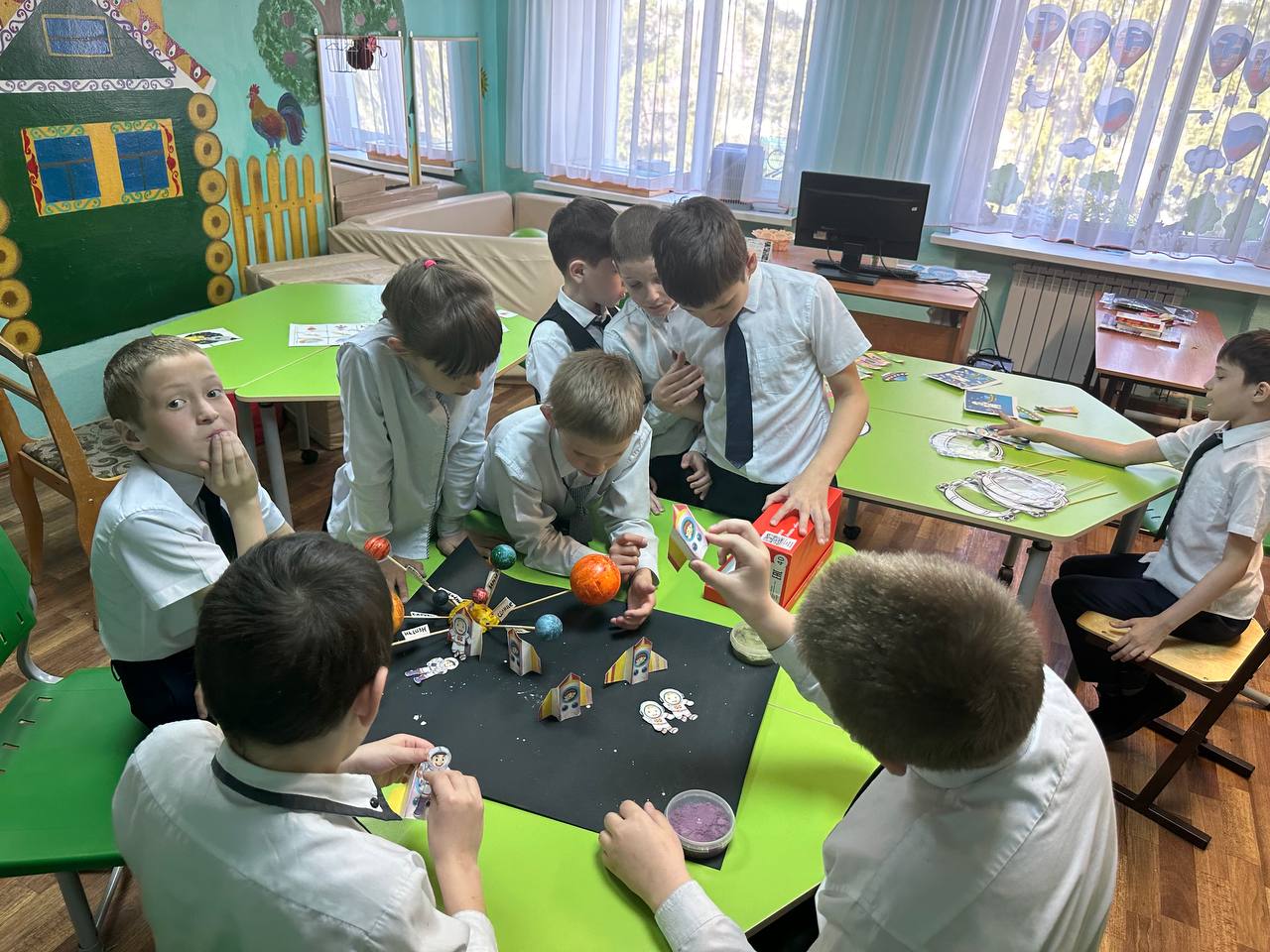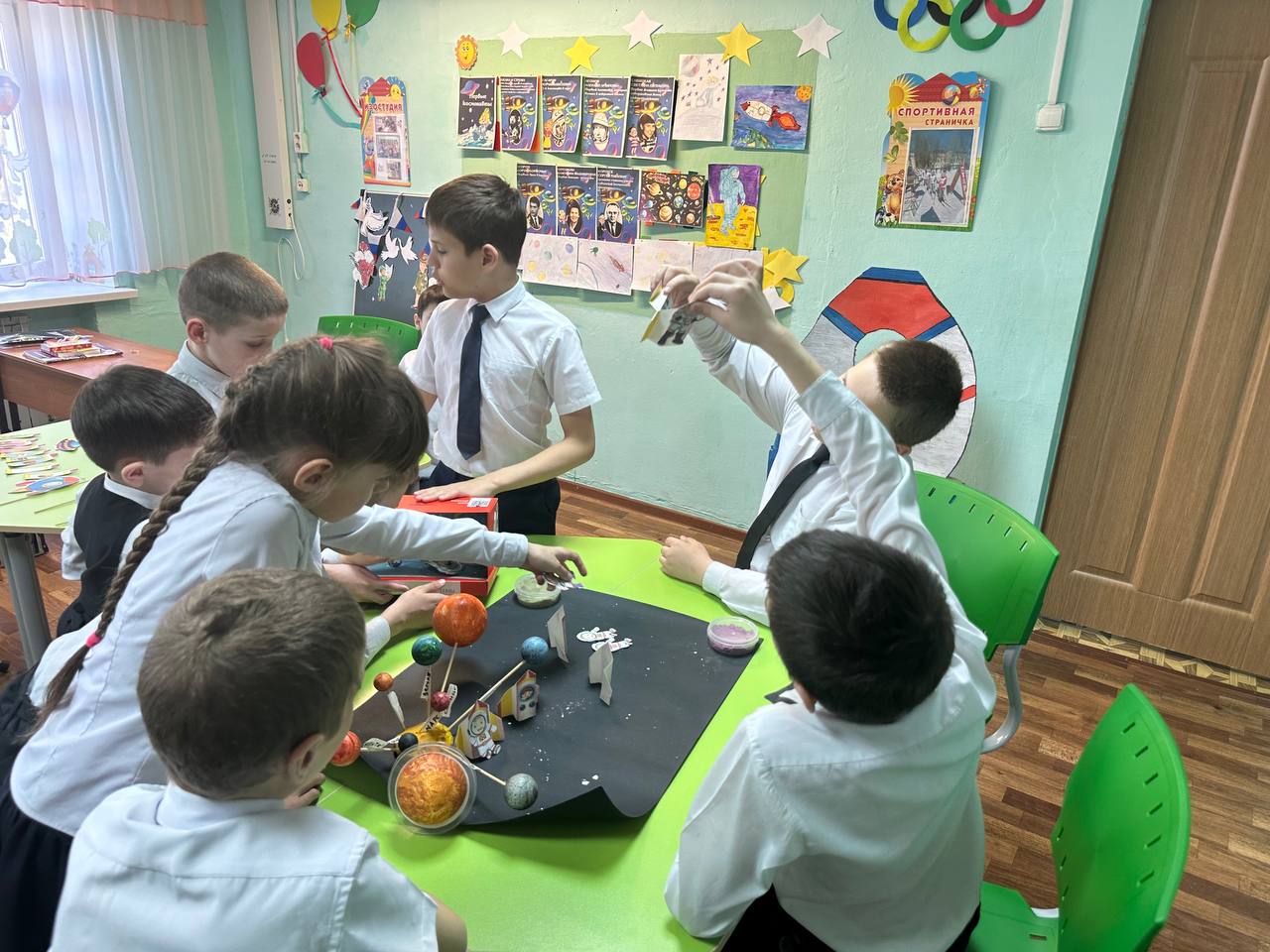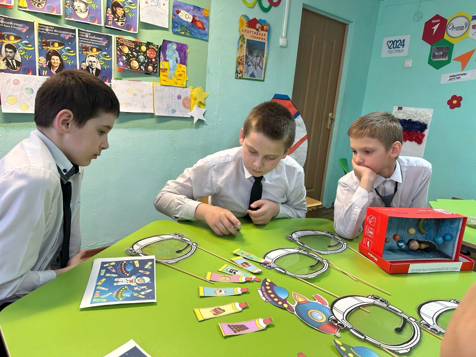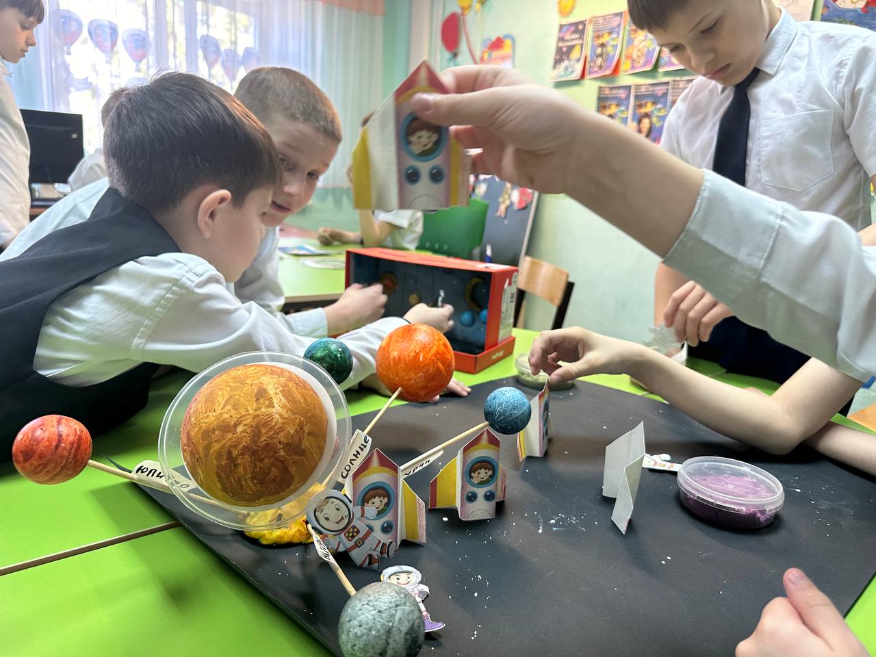 12 апреля 1961 года советский космонавт Юрий Гагарин на космическом корабле «Восток-1» стартовал с космодрома «Байконур» и впервые в мире совершил орбитальный облёт планеты Земля. И сегодня ребята начальной школы - интерната отправились в космическое путешествие, начав его со знаменитой фразы: "Поехали!". Обучающиеся сконструировали космическую ракету, готовились к полёту, примерив шлемы; познакомились с космической едой, распределив космические тюбики на "полезную" и "вредную еду". Собрали пазл - ракету, "Космическое лото"; изучили галактику, космическое пространство и планеты солнечной системы, самостоятельно отправили космонавтов на ракете в полет. Благодаря педагогам, ребята знакомы с многими фактами из истории космоса, безошибочно назвали все известные фамилии космонавтов и создали стенд "Покорители космоса", оформили выставку рисунков. Насыщенное мероприятие вызвало восторг у обучающихся, ведь они с интересом останавливались на всех "космических станциях".