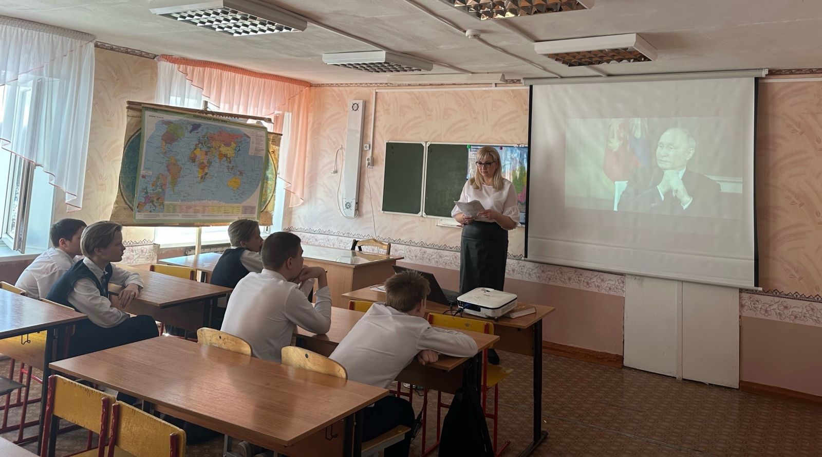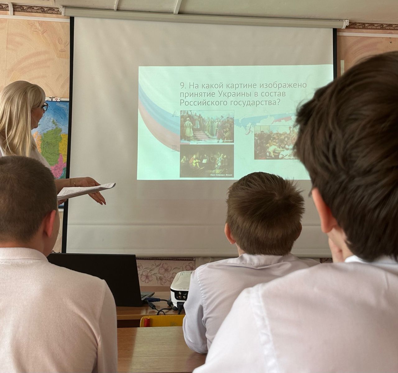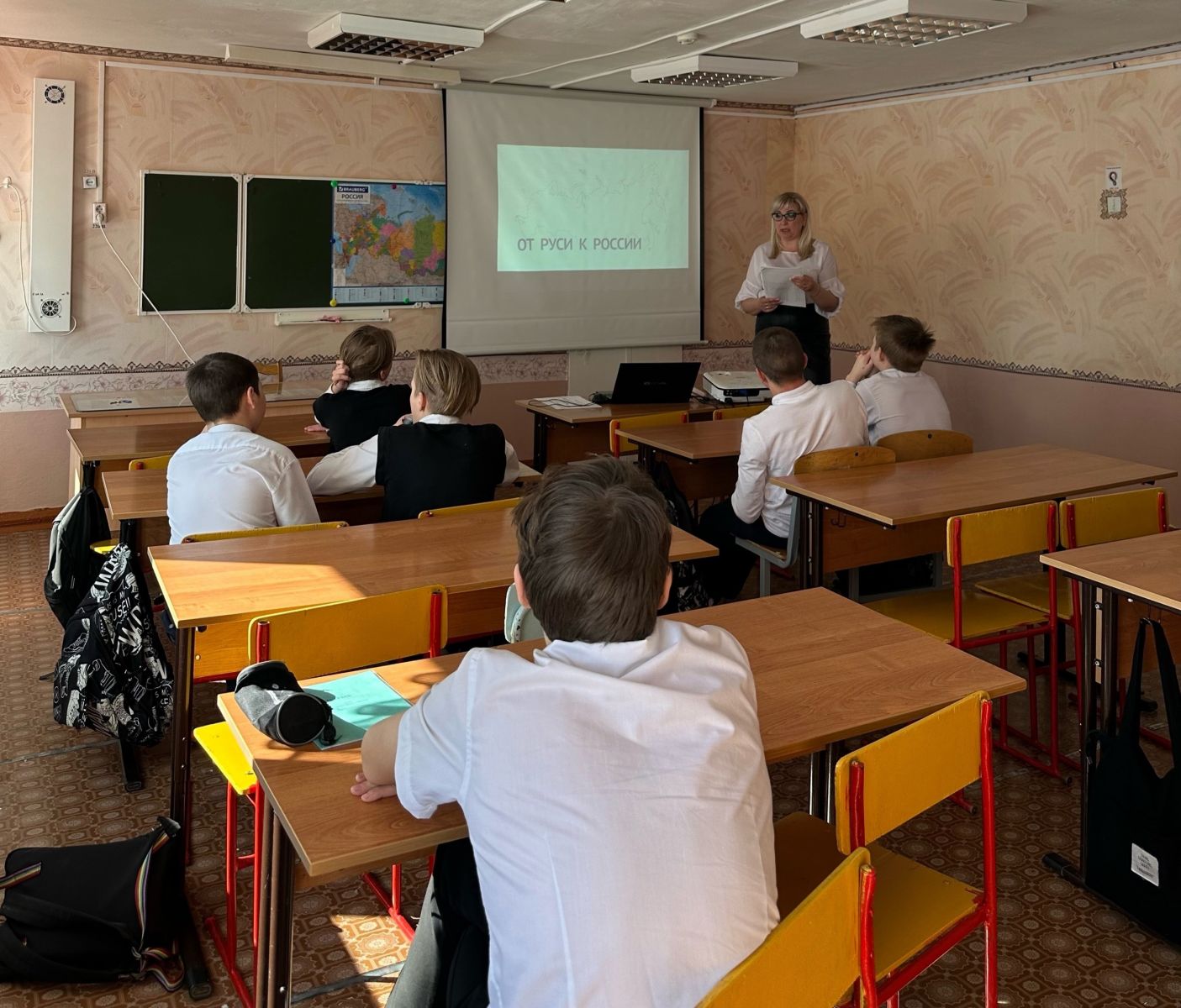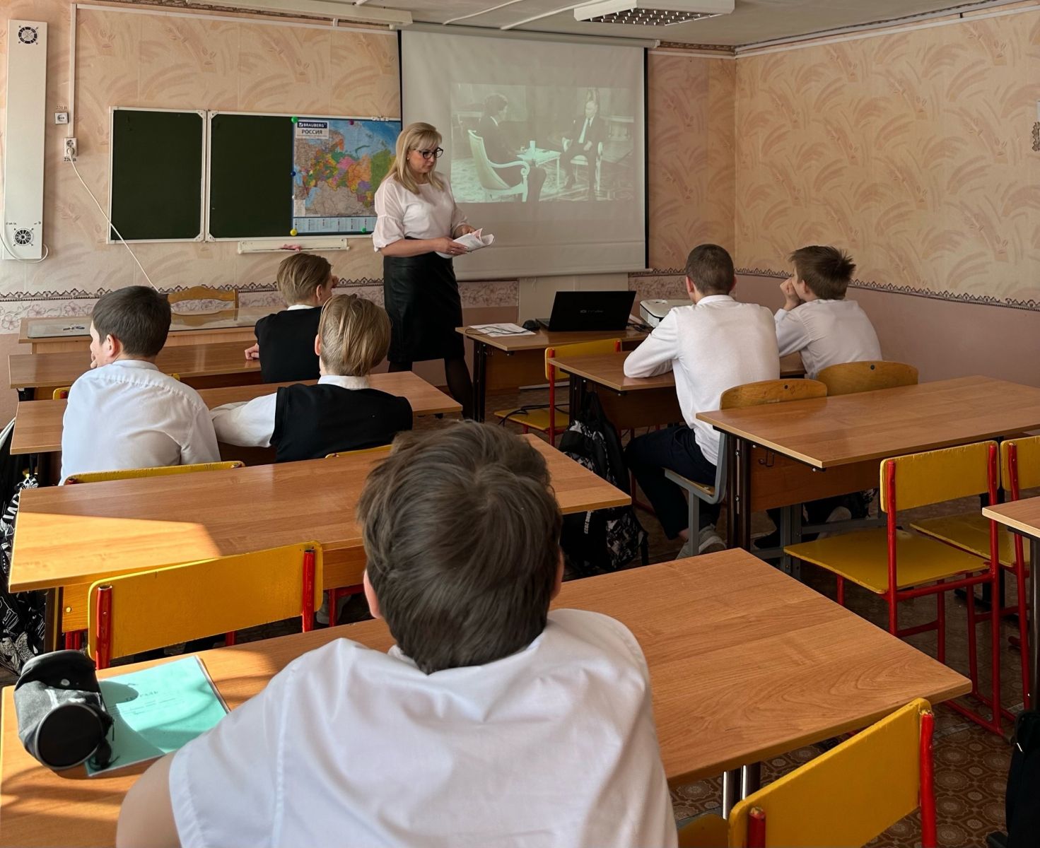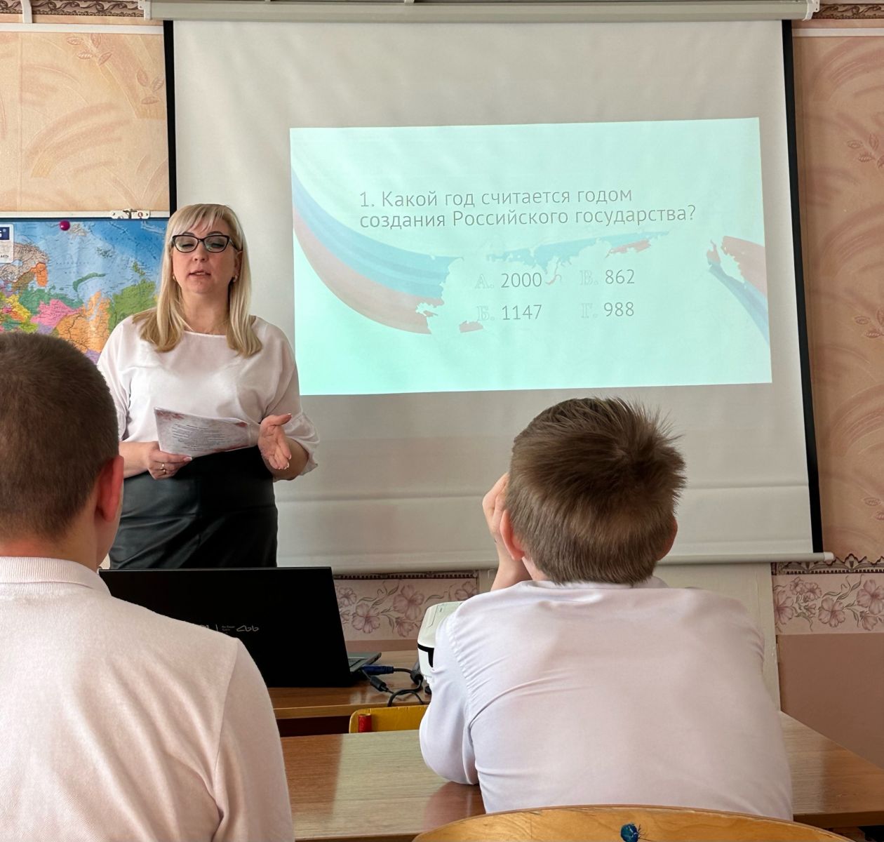 Сегодня советник директора по воспитанию, Низамутдинова Н.В. провела интеллектуальную игру "От Руси к России". Занятие, на котором обучающиеся ответили на вопросы, позволяющие сформировать представление об этапах становления Российского государства, а затем просмотрели видеофрагменты интервью Президента России Владимира Путина американскому журналисту Такеру Карлсону.
