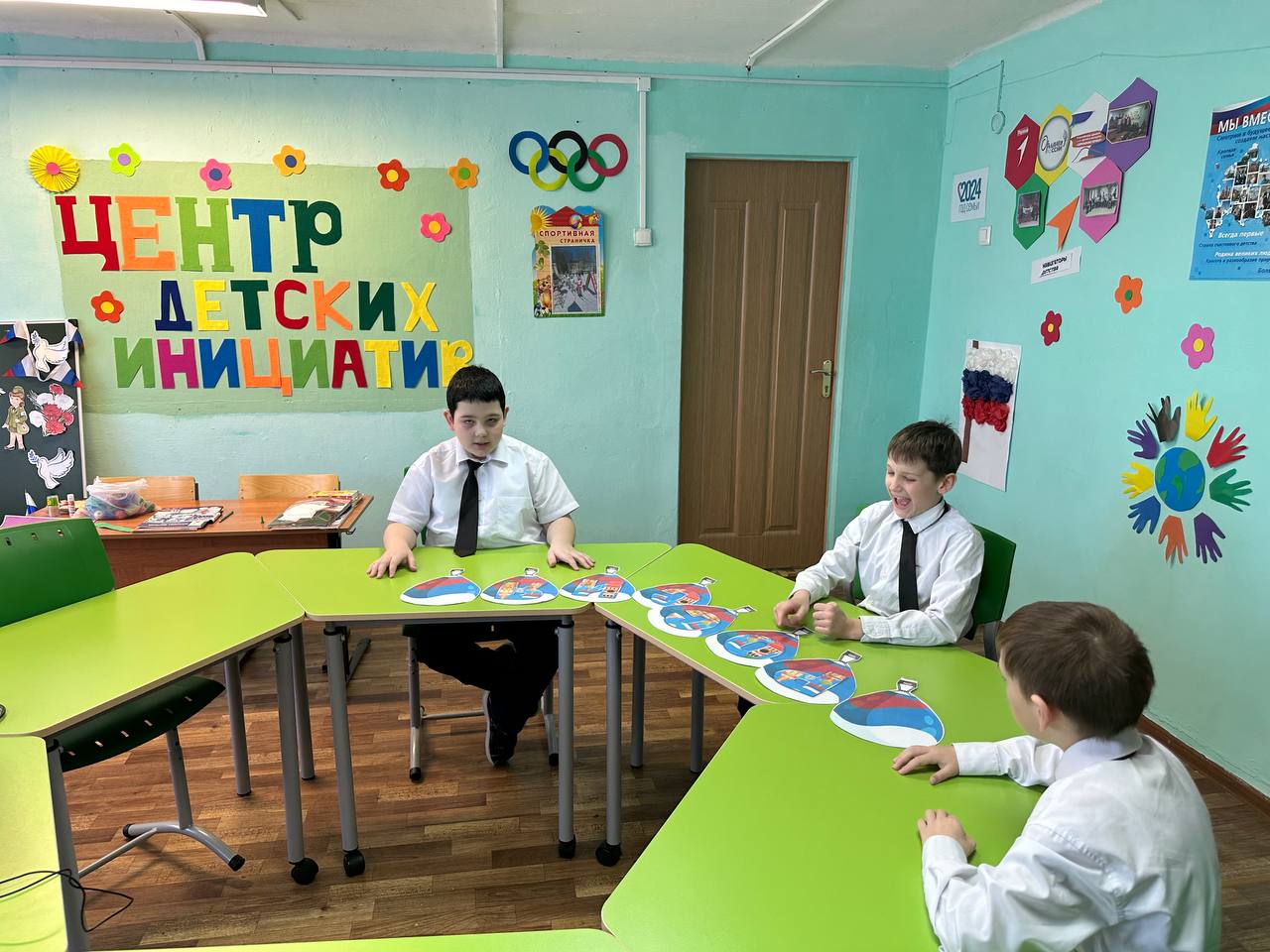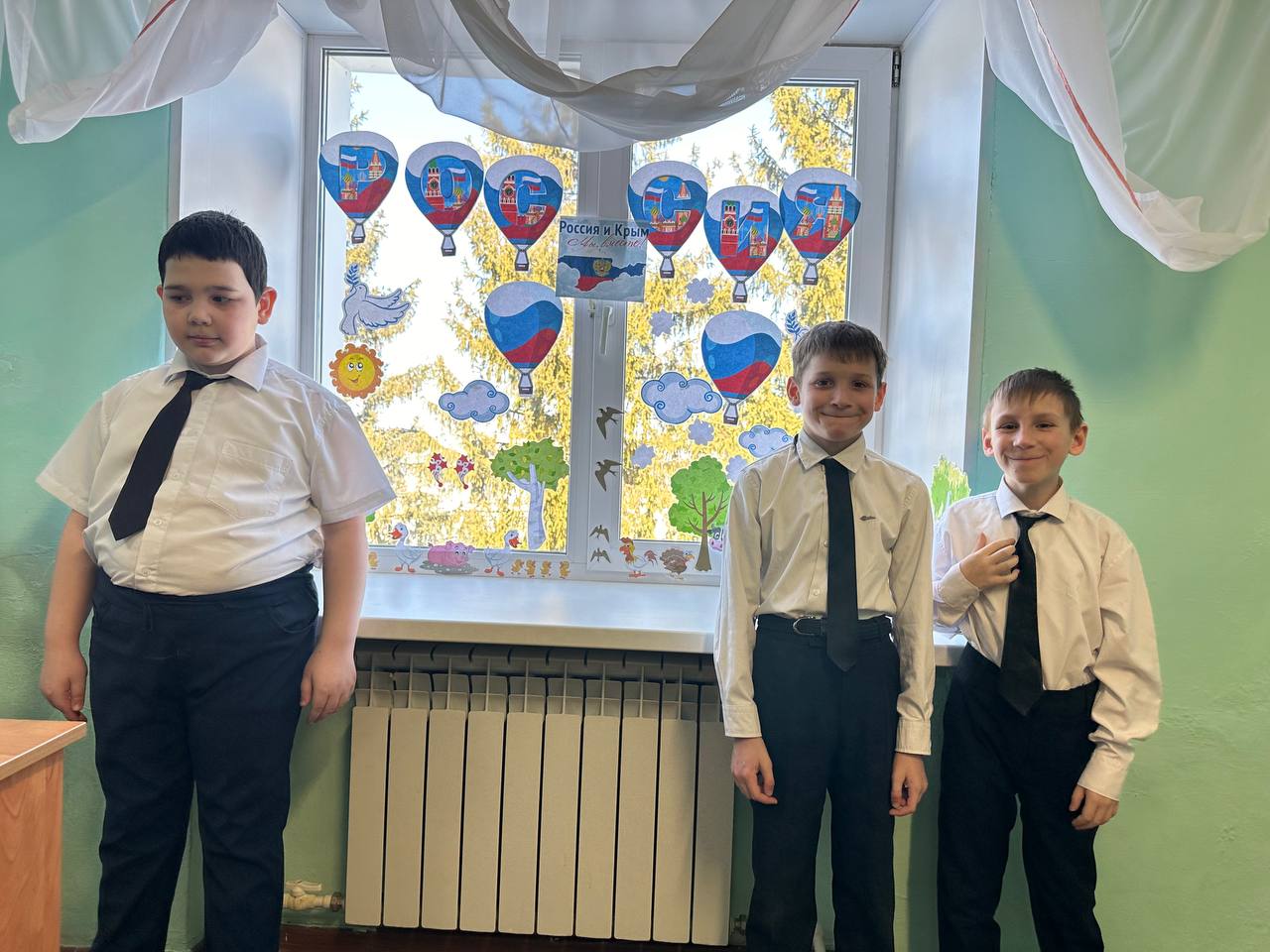 Сегодня организована акция «Окна Русской весны». Советник директора по воспитанию и взаимодействию с детскими общественными объединениями, Низамутдинова Н.В. предложила ребятам 3 класса оформить окна в Центре Детских инициатив на тему воссоединения Крыма и России.