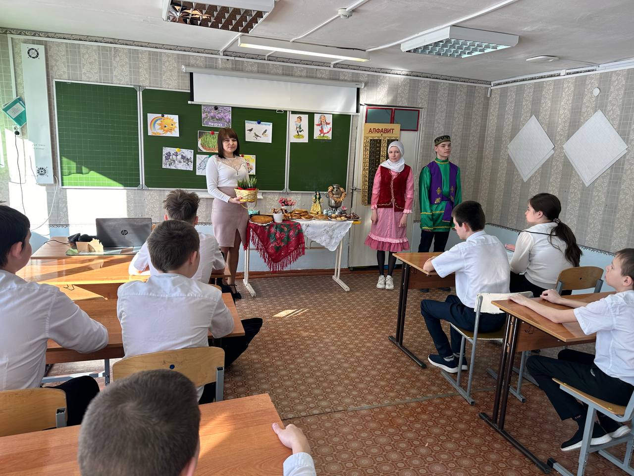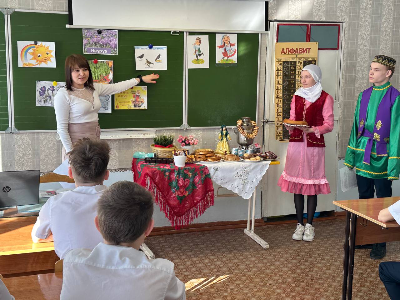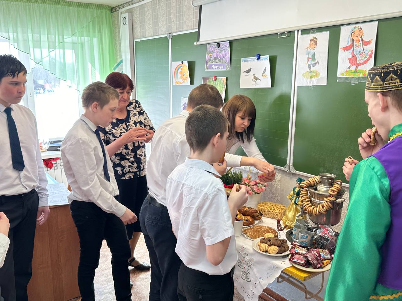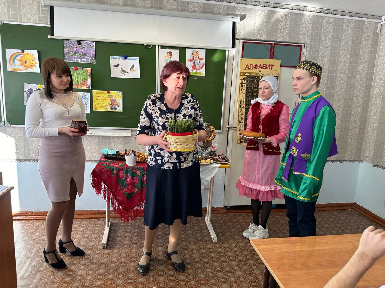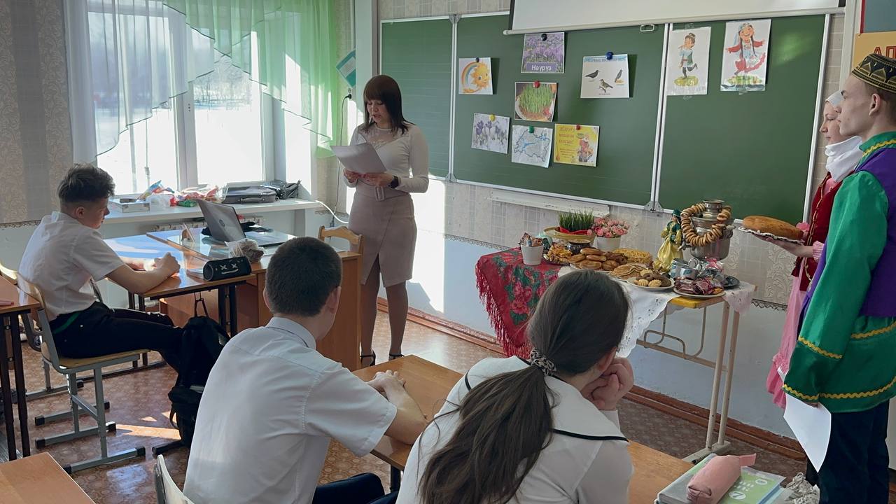 Науруз — праздник весеннего обновления. По восточному календарю Наурыз - начало нового года, совпадает с днем весеннего равноденствия. Этот праздник является символом весеннего обновления, торжества любви, плодородия и дружбы. В старину до прихода праздника люди приводили свои дома и хозяйство в порядок, в честь праздника сажали деревья, цветы. Считалось, что если Наурыз входит в чистый дом к хорошему хозяину, то болезни, неудачи, невзгоды обходят его стороной. С приходом праздника одеваются в праздничные одежды, ходят, друг к другу в гости и обмениваются поздравлениями и пожеланиями благополучия в наступающем году. В нашей школе - интернате проведено праздничное мероприятие "Науруз - Байрам!". Во время праздника царила атмосфера добра, веселья и радости. Дети с интересом принимали участие в мероприятии: знакомились с традициями и обычаями, играли в игры, отгадывали загадки, вспомнили пословицы и поговорки, а далее отведали блюда татарской кухни.