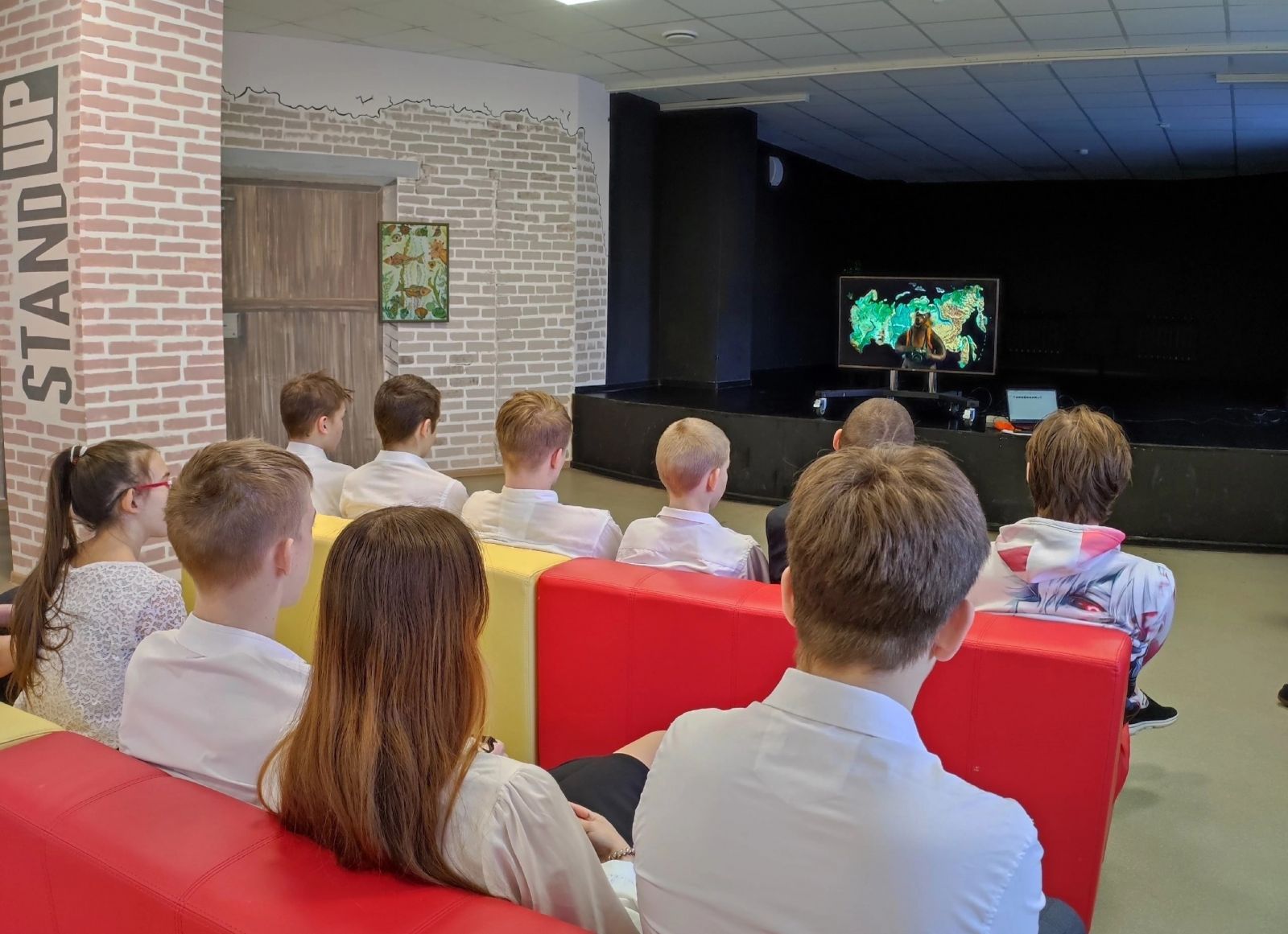 В рамках Урока волонтеры Победы Бугульмы совместно со специалистами молодежной политики подготовили для школьников познавательную и увлекательную информацию о государственном устройстве и государственных символах Российской Федерации. С помощью мультипликационных роликов «Мульти-Россия» ребята познакомились с разными регионами, городами и народностями. Сведения, изложенные в фильмах, касались географии, экономики, истории, культуры каждого края. Все фильмы объединены образом ведущего: это пластилиновый Медведь-краевед, который в каждом фильме надевает несколько различных костюмов, представляющих различные народности или профессии, значимые для региона.