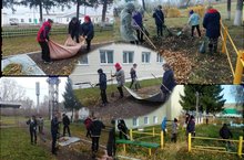 Вооружившись необходимым инвентарем, ребята и педагоги с удовольствием приводили в порядок школьную территорию: собирали мусор, сгребали осеннюю листву и траву, выпиливали старые сучки деревьев и кустарников, разбирали кучи спиленных веток. Общими усилиями за несколько часов школьная территория преобразилось: везде чисто и сказочно красиво.