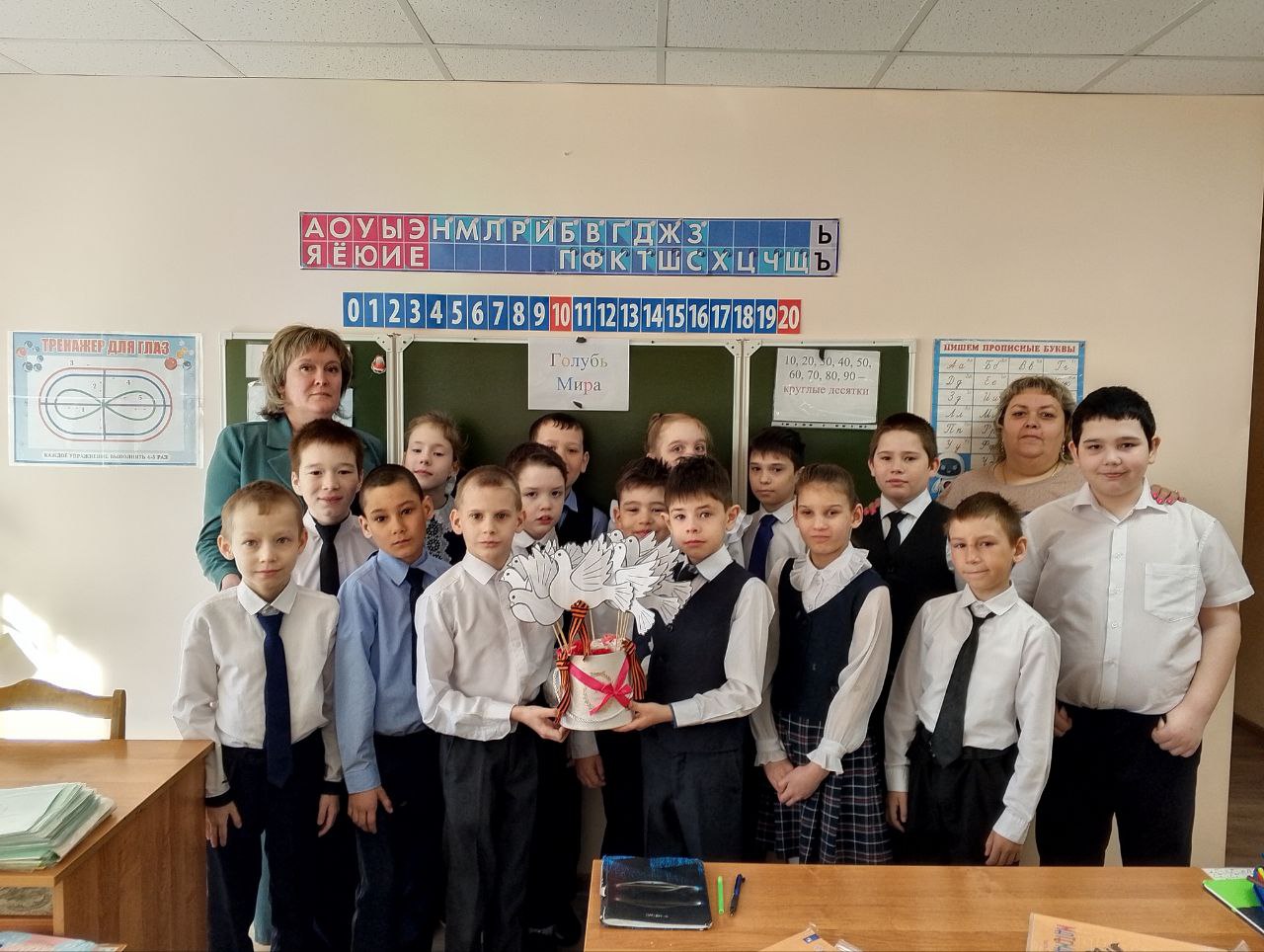 Педагог Вафина Светлана Сергеевна совместно с обучающимися 7 класса решили принять участие в всероссийской акции «Голубь Мира – Голубь Победы», не остались в стороне и педагоги Старчеусова Н.Н., Вишневская И. С., Останкова О.П., Положенцева Л. С., которые со своими группами также присоединились к акции! Ребята с удовольствием обводили и вырезали свои ладошки, оставив на них самые теплые пожелания. Мы за мир во всём мире!!!