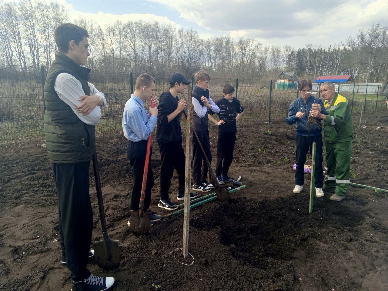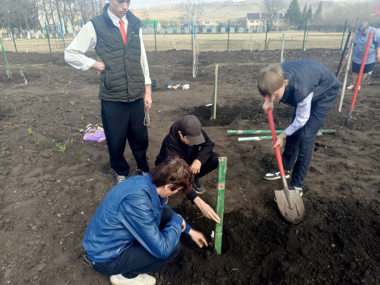Активисты школы - интерната приняли участие в акции «Подари земле сад» в рамках проекта «Эковесна 2025». Ребята высадили яблони на территории школы под руководством Руслана Морисовича Нагимова, который является руководителем мини - питомника, выращивающий саженцы в г. Казани. Руслан Морисович - автор книги "Приусадебное плодоводство", он подарил школе своё издание. Наши воспитанники внесли свой вклад в озеленение и улучшение экологии. Это мероприятие не только способствует сохранению природы, но и формирует у детей ответственность за окружающий мир. Мы гордимся нашими активистами и надеемся, что их усилия вдохновят других на заботу о природе!